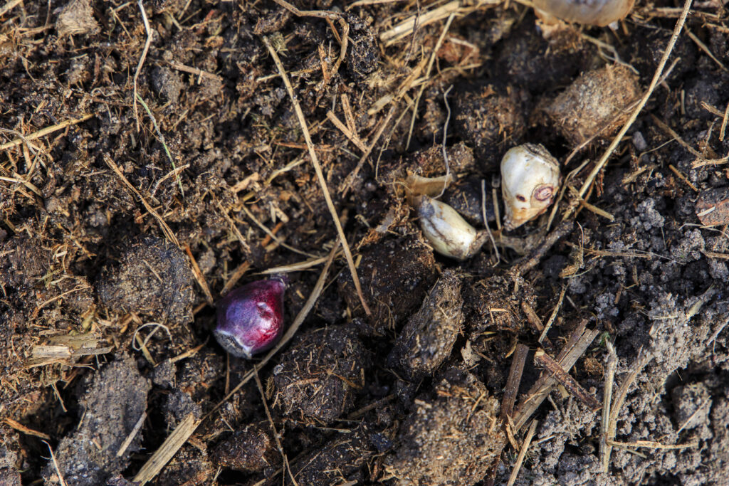 Na dit opschonen volgt bodemverbetering. Bloembollen houden van een rijke, humeuze, vochtige, lemige en kalkrijke bodem. Oftewel een gezonde bosbodem. Afhankelijk van je bodemtype, is er dus enige bijsturing nodig.