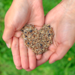 Zo weinig zaden zijn wel lastig gelijkmatig te verdelen over een oppervlak. Door de zaden te mengen met fijn zand of zemelen kun je ze gelijkmatiger uitstrooien en je ziet direct waar je al bent geweest!